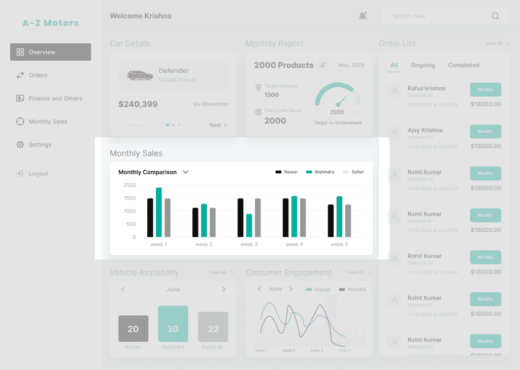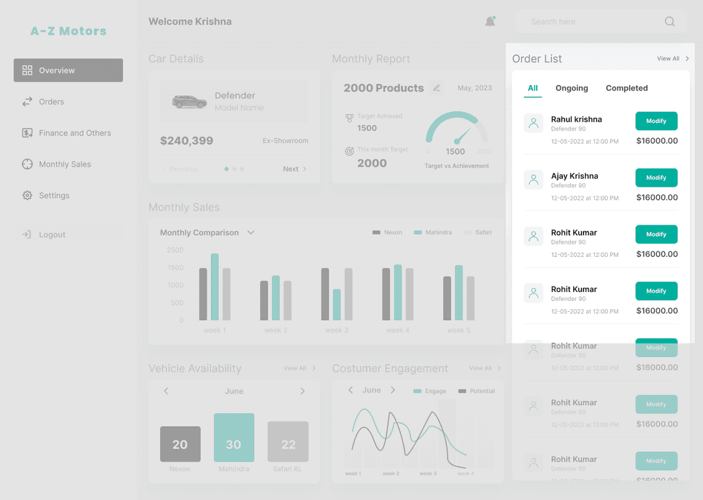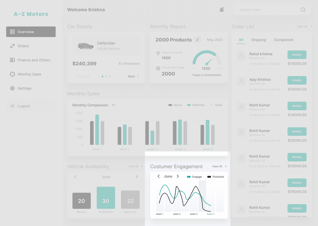The Car Dealer Dashboard, designed following a rigorous user-centered design approach, aims to provide users with a convenient andexciting experience for users. By conducting extensive user research, ideation, prototyping, and testing, the dashboard ensures that it meets customer needs and expectations. My main moto was to create an dashboard which will be easy for the users to digest but will serve its purpose of providing user with information